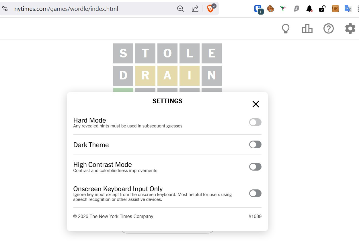 Quote from: klondike on Today at 02:27:12 PMIt's in Wordle game settings
